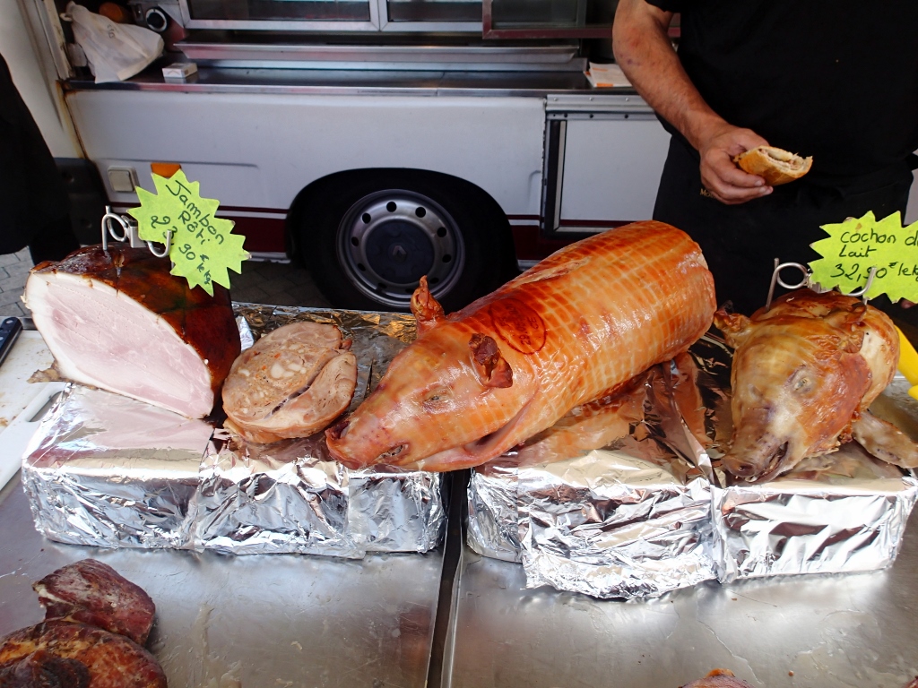Poulet roti blanc ou noir, ailes de poulet, jarret de porc, palette de porc, paella, saucisse chorizo, saucisse au muscadet, cochon de lait, gratin dauphinois, pomme de terre et plus.